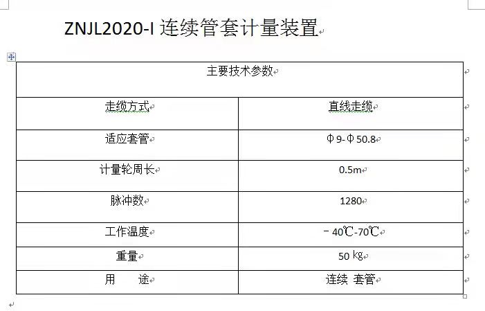 主要技術參數(shù)走纜方式繞主、副計量輪一周適應鋼絲φ2.4……