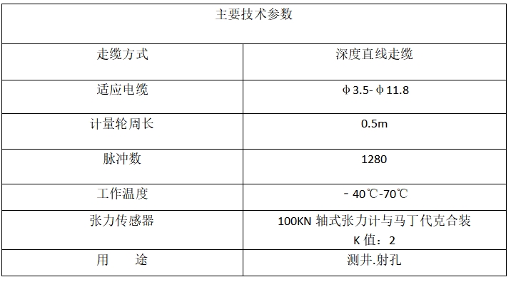 主要技術(shù)參數(shù)走纜方式繞主、副計量輪一周適應(yīng)鋼絲φ2.4……